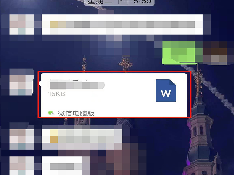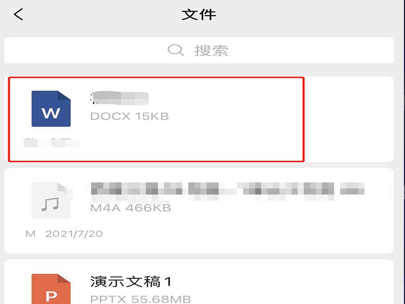 1、打开微信app,在与好友的聊天界面上,找到传输的微信文件,点击文件长按打开文件消息工具栏。