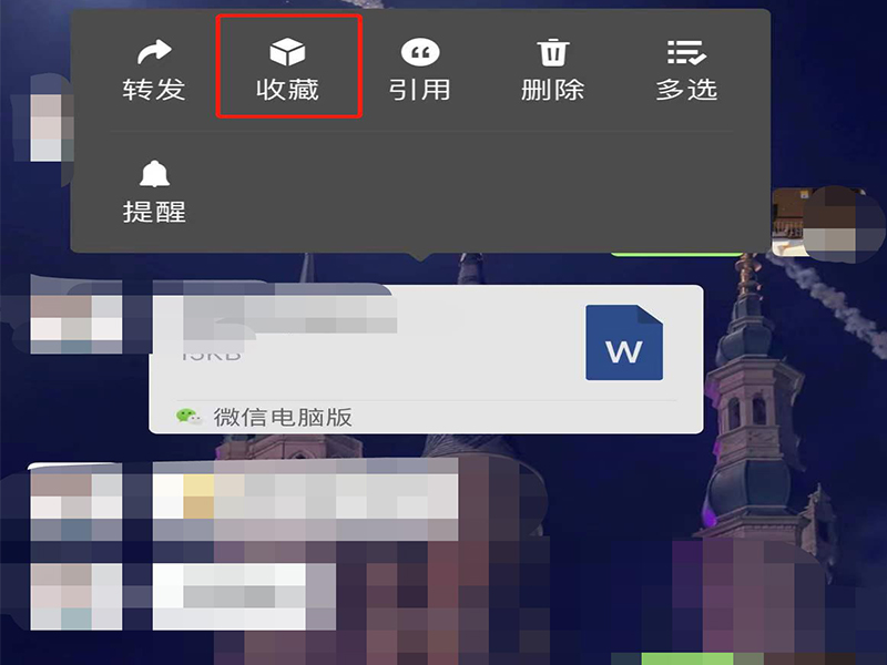 2、在文件消息工具栏上,点击“收藏”,即可将文件添加至微信收藏夹中。