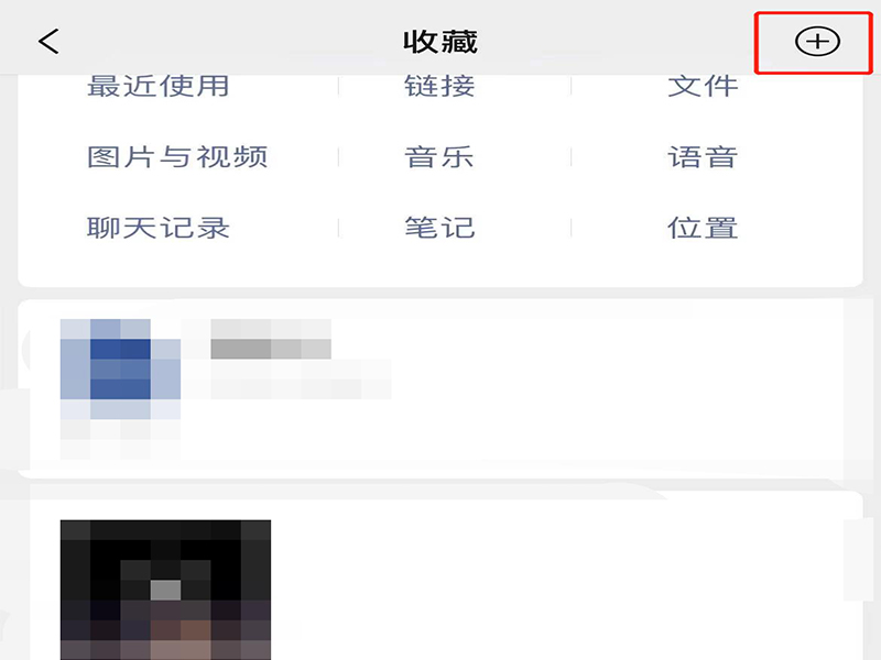 2、在收藏页面上,点击“+”图标,进入笔记页面。