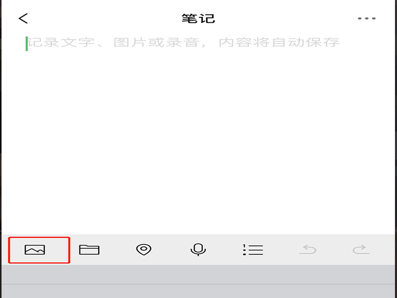 3、在笔记页面上,点击左下方的照片图标,进入手机相册筛选页面。