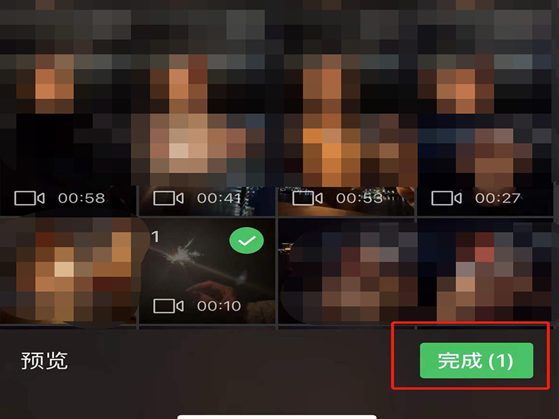 4、在手机相册筛选页面上,选择需要分享的视频,并点击“完成”,即可将视频添加至笔记页面中。