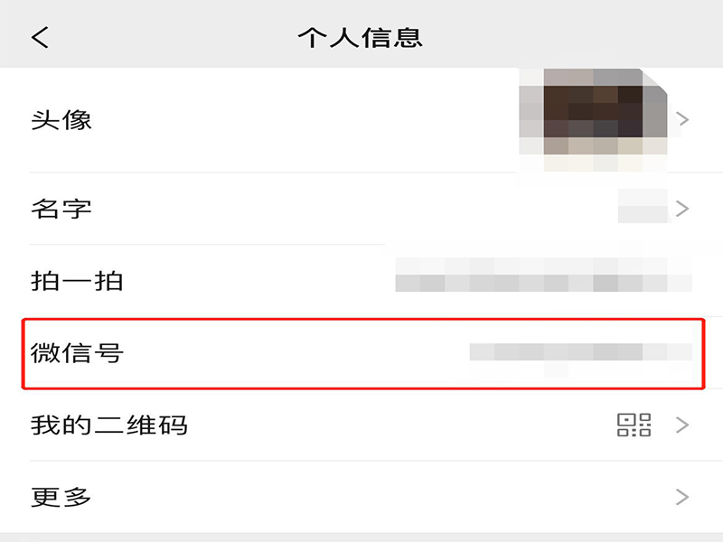 2、在个人信息页面上,点击“微信号”,进入微信号页面。