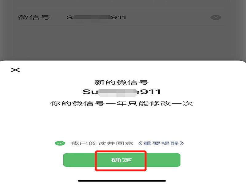 4、输入新的情侣微信号“Suu-911”,点击“确定”,即可完成微信号设置。