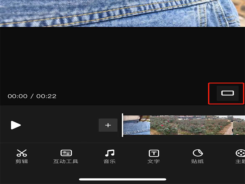3、在视频编辑页面中,点击右下方的长方形图标,打开视频比例调整工具栏。