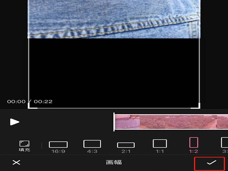 4、在比例调整工具栏上,选择点击竖屏比例,并点击右下角勾图标即可改成竖屏。