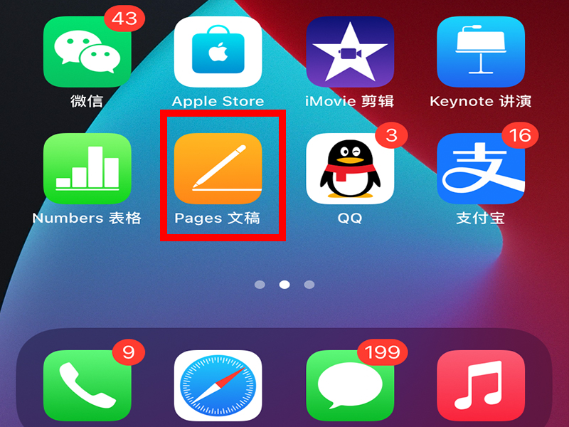 苹果手机自带的word软件叫“pages文稿”,使用pages文稿的具体操作方式如下: