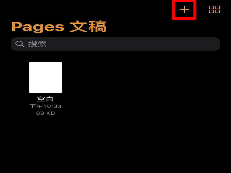 2、进入“pages文稿”主界面后,点击右上角的“+”号。