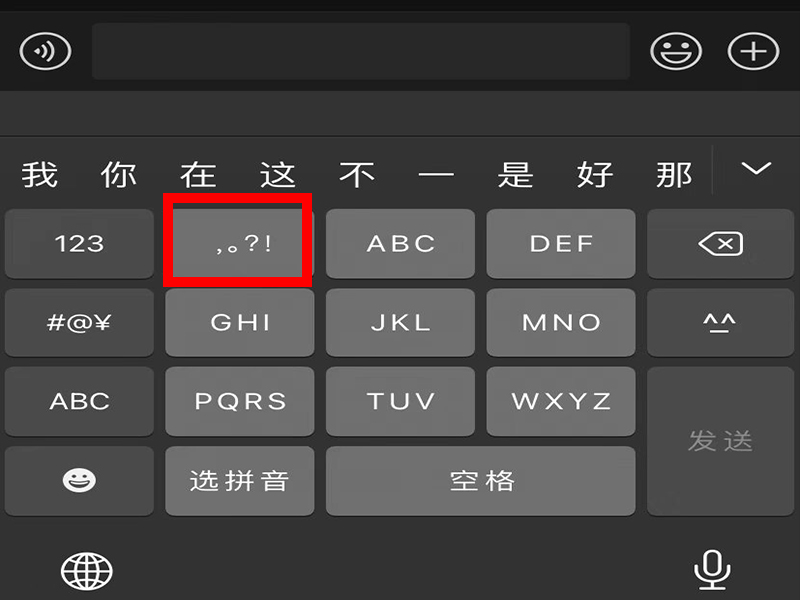 1、进入输入界面,打开输入法,并点击“标点符号”按键。