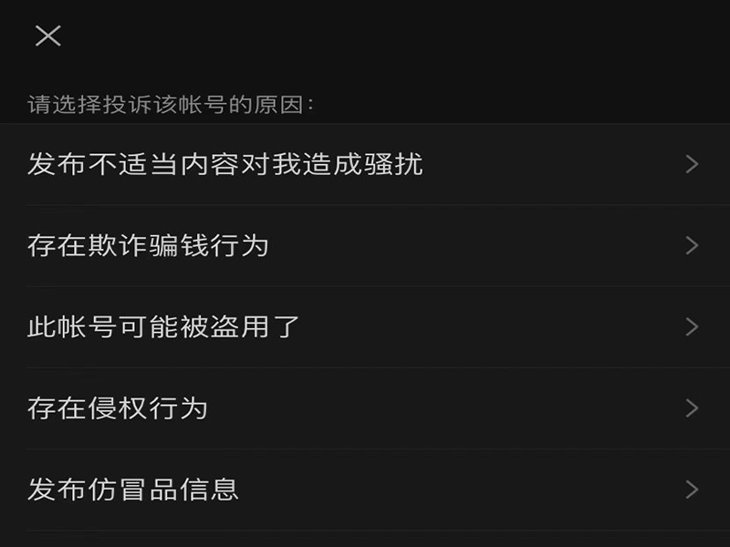 4、进入“投诉”界面后,选择想要投诉的原因即可。