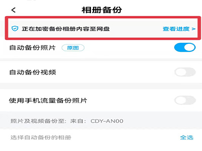 4、点击相册备份页面上方的“查看进度”,即可查看照片的备份进度。