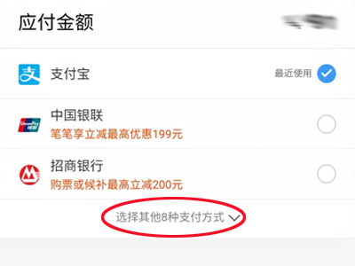 3、点击中间的“选择其它8种支付方式”,选择支付方式。