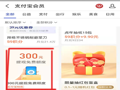 支付宝可以在支付宝会员页面使用积分增加免费提现额度。支付宝是国内的第三方支付平台,自2014年第二季度开始成为当前全球最大的移动支付厂商。支付宝增加免费提现额度的具体操作方法如下:
