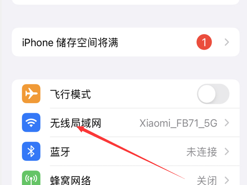 1、打开手机的设置,点击“无线局域网”的按钮,进入无线局域网的设置页面中。