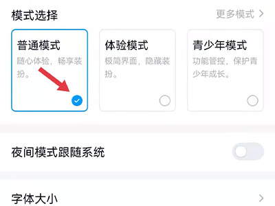 qq有普通模式、体验模式、青少年模式、关怀模式,体验模式界面比较精简,装扮也隐藏了,在qq中关闭体验模式的具体操作方法如下: