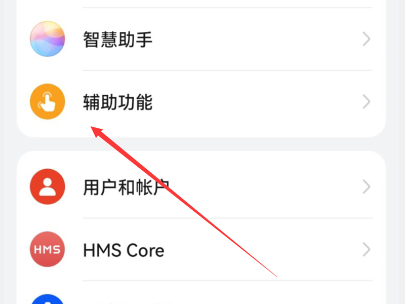 1、打开手机的设置,点击“辅助功能”按钮,进入辅助设置页面。