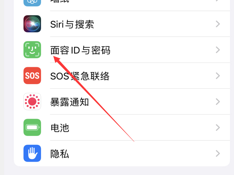 1、打开手机的设置,点击“面容ID与密码”的按钮,进入面容ID与密码的设置页面中。