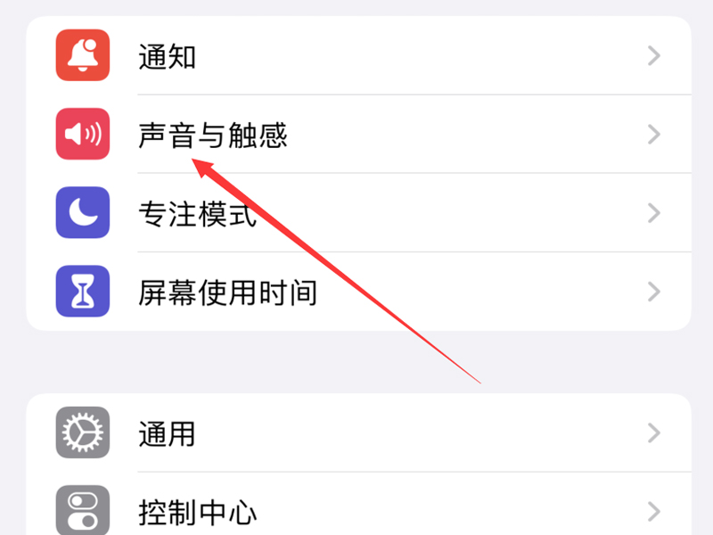 1、打开手机的设置,点击“声音与触感”按钮,进入声音与触感的设置页面。