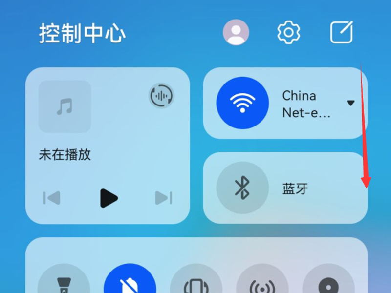 1、进入手机的桌面中,从手机屏幕的右上角往下滑,呼出控制中心的界面。