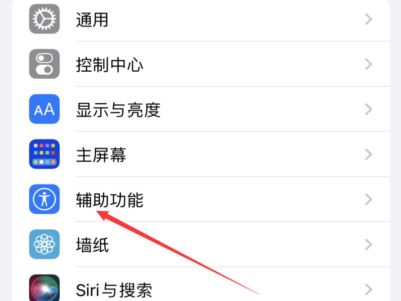 1、打开手机的设置,点击“辅助功能”按钮,进入辅助功能的设置页面中。
