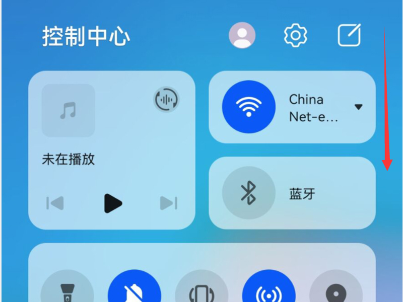 1、进入华为平板的桌面中,从屏幕的右上角往下滑,呼出控制中心的界面。