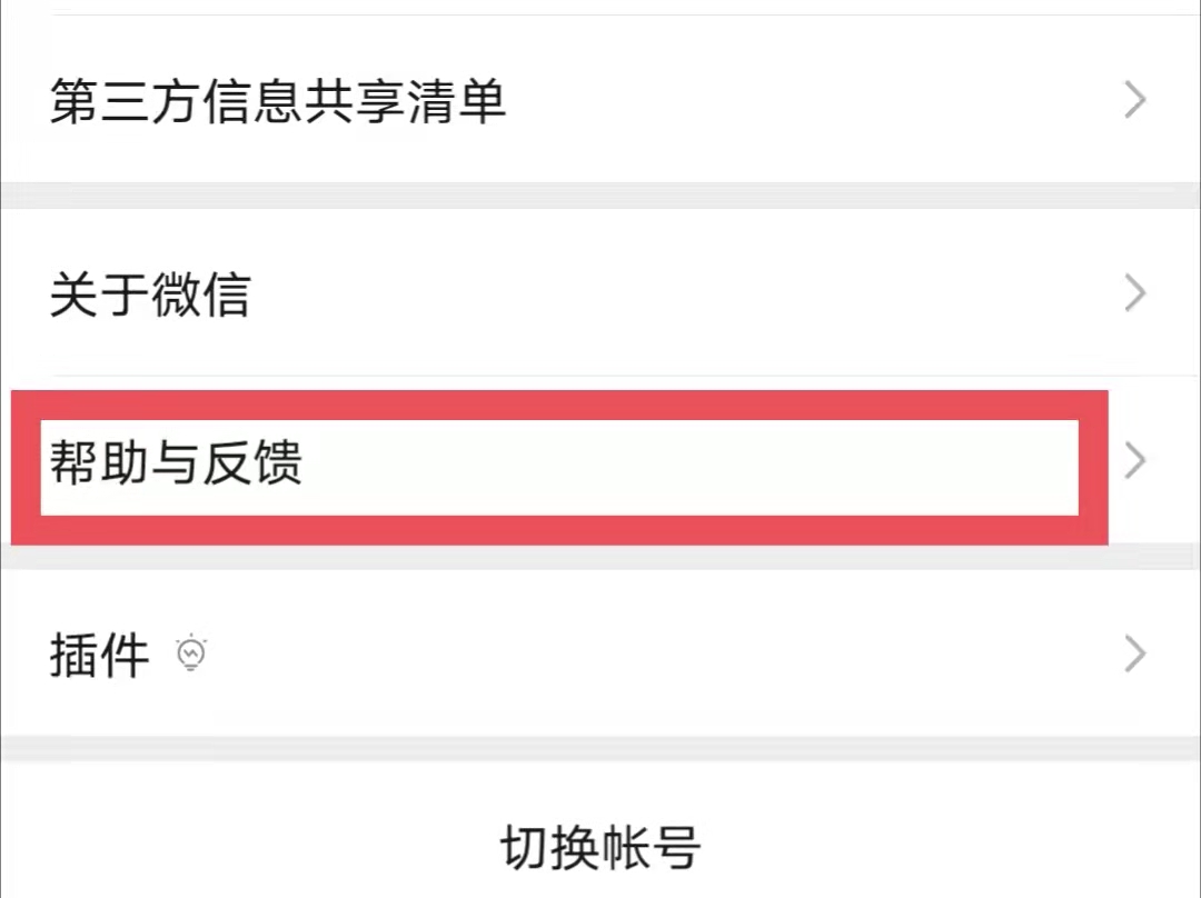 1、打开微信APP,点击“我”,再点击“设置”,最后点击“帮助与反馈”,进入该界面。