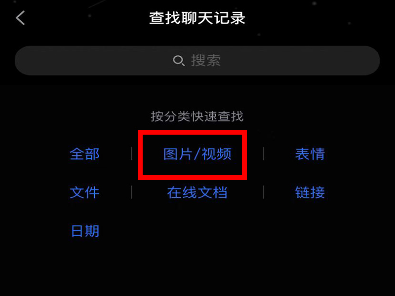 3、进入“查找聊天记录”界面后,点击“图片/视频”。
