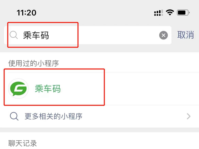 1、微信在“通讯录”上方的搜索栏处搜索“乘车码”,进入该小程序。