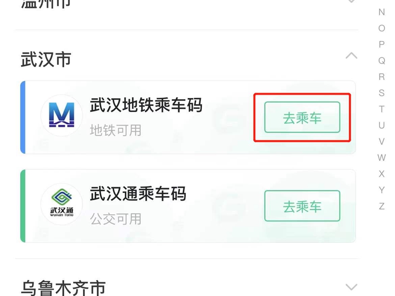 3、选择“武汉地铁乘车码”,进入激活后便可使用。