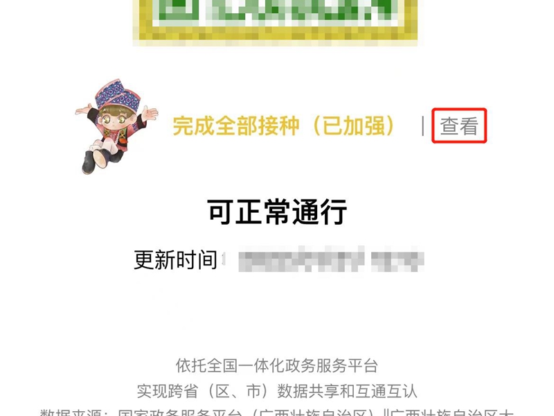 3、根据提示完成验证后,在我的健康码页面,点击二维码下方的“查看”即可查询接种记录。