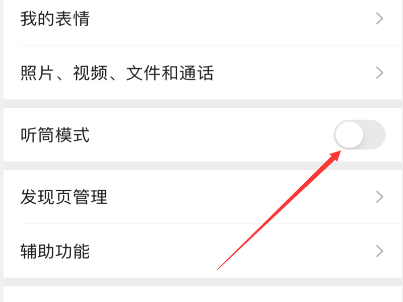 4、把页面中的“听筒模式”后面的开关关闭即可。