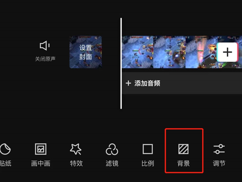 2、向右滑动下方剪辑工具栏,选择“背景”。