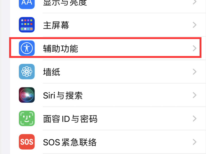 1、打开手机的设置,点击“辅助功能”按钮,进入辅助功能的设置页面中。