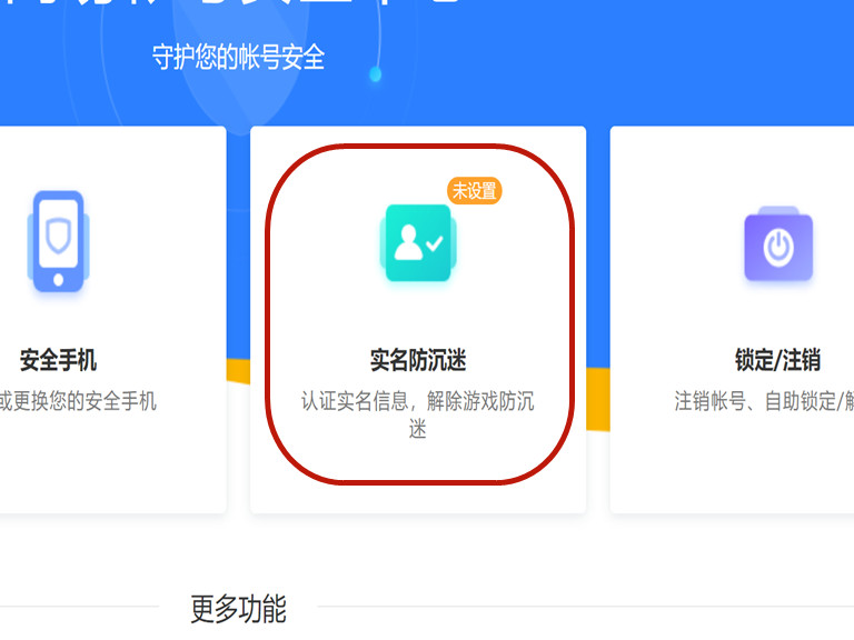 3、点击“实名防沉迷”即可查看网易邮箱有没有实名。