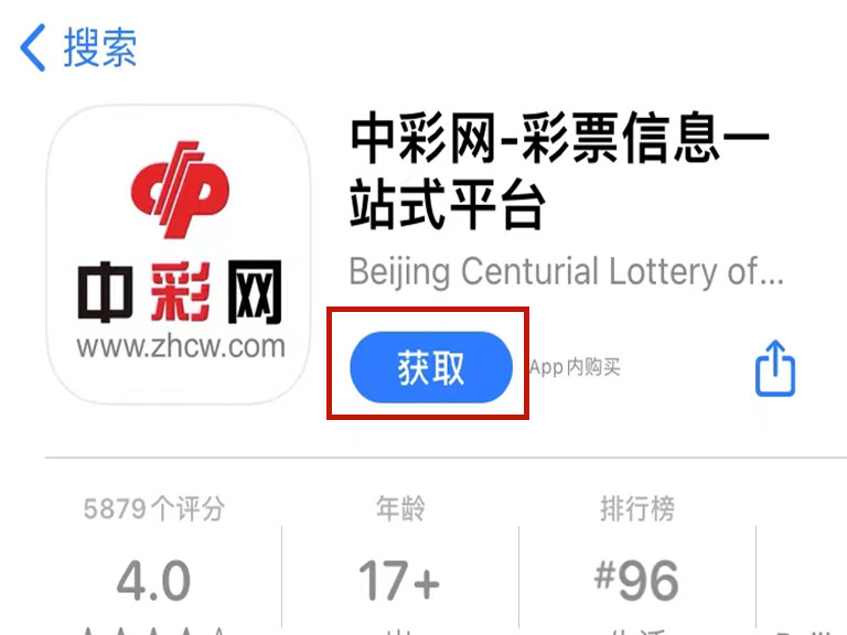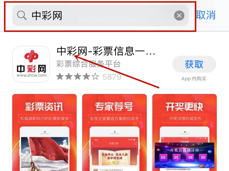 1、打开App Store,搜索“中彩网”进入中彩网页面。