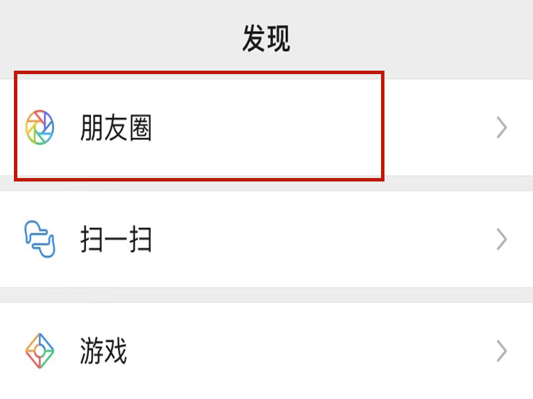 1、打开微信,切换到发现页面,点击“朋友圈”进入朋友圈页面。