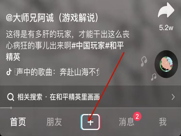 1、打开抖音,点击下方“+”进入作品拍摄页面。