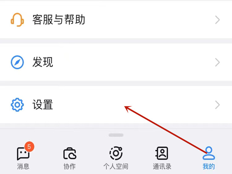 1、打开钉钉,切换到个人中心,点击“设置”进入设置页面。