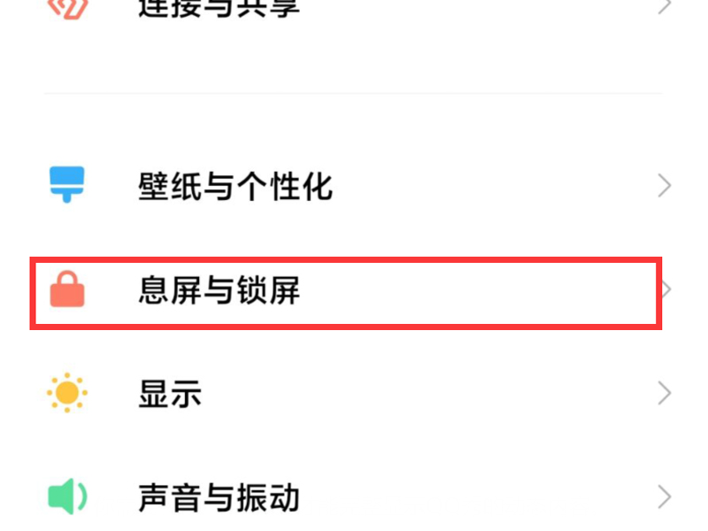 1、打开手机的设置,点击“息屏与锁屏”按钮,进入息屏与锁屏的设置页面。