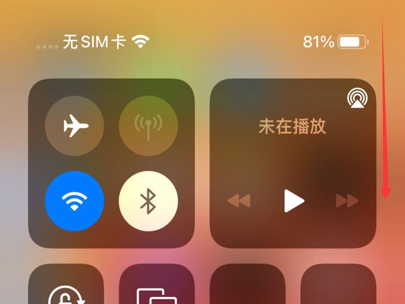 1、进入手机的桌面中,从手机屏幕的右上角往下滑,呼出控制中心的界面。