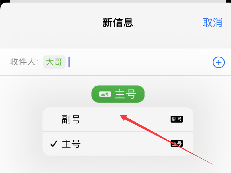 双卡的苹果手机在发短信时是可以切换手机卡的,苹果13发短信时可以在添加收件人后进行切换主副卡,具体的操作方法如下:
