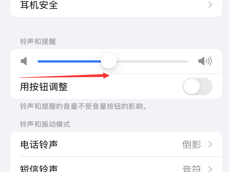 2、把“铃声和提醒”下方的调节条向右拉大声音即可恢复手机正常的来电声音。