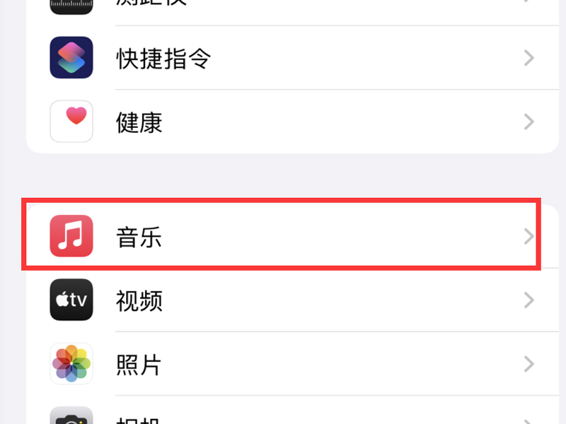 1、打开手机的设置,点击“音乐”按钮,进入音乐的设置页面。