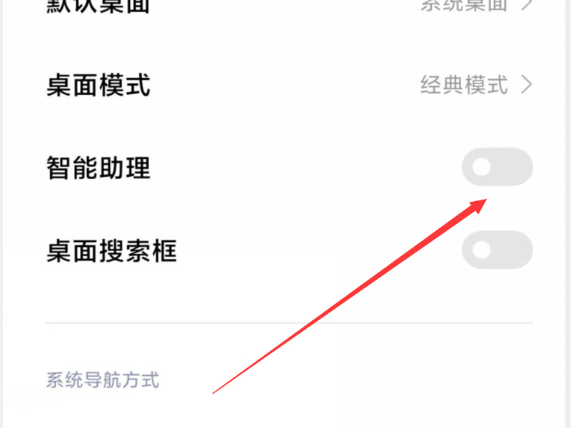 2、在页面中把“智能助理”按钮的开关进行关闭即可,关闭后就不会再出现负一屏了。