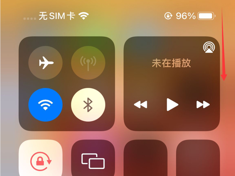 1、进入手机的桌面中,从手机屏幕的右上角往下滑,呼出控制中心的界面。