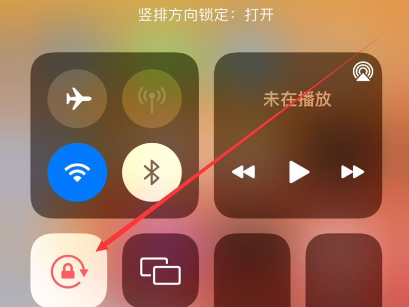 2、在控制中心里打开“竖排方向锁定”的开关即可把手机锁定竖屏。