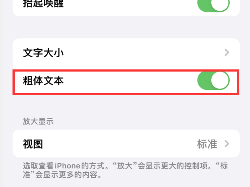 2、在页面中把“粗体文本”按钮的开关进行打开即可,打开后苹果手机的字体就会加粗。