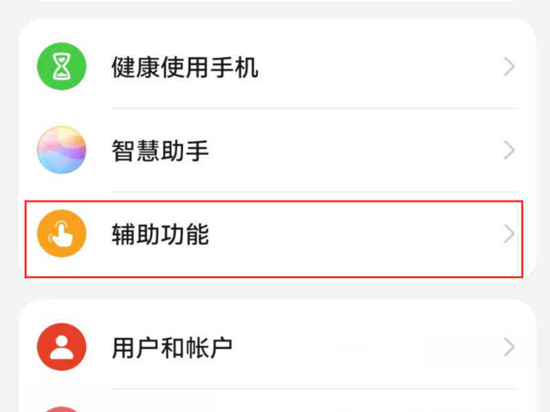 1、打开手机的设置,点击“辅助功能”按钮,进入辅助功能的设置页面中。
