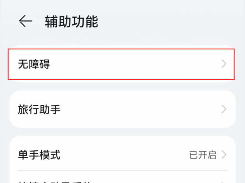 2、点击“无障碍”按钮,进入无障碍设置的页面。
