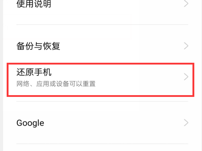 2、点击“还原手机”按钮,进入还原手机的设置页面。
