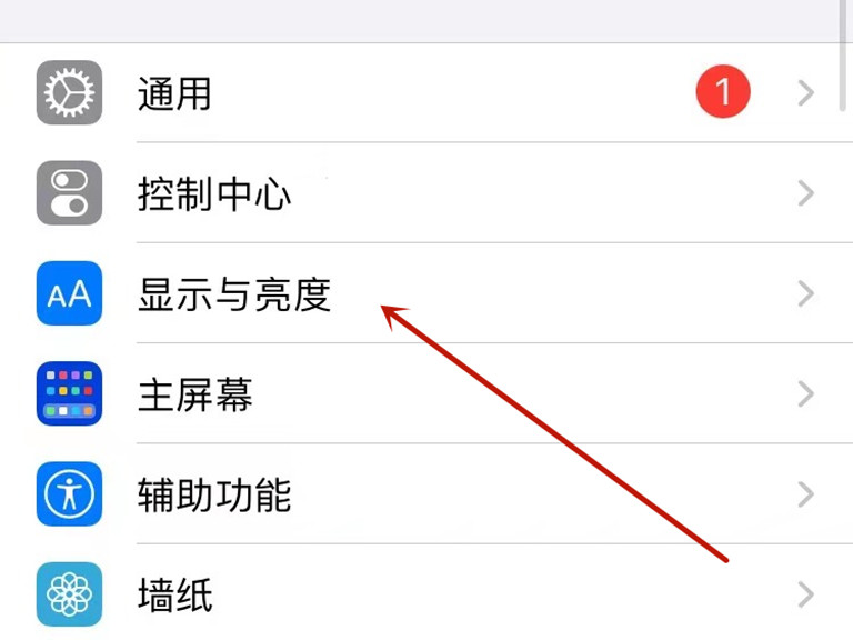 1、打开设置,点击“显示与亮度”进入显示与亮度页面。